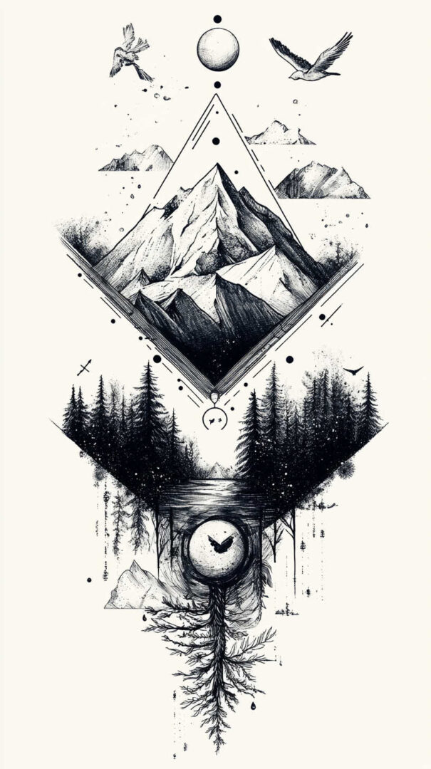 - Mountains, trees, and waves alongside symbolic icons like compasses, crosses, or infinity symbols.