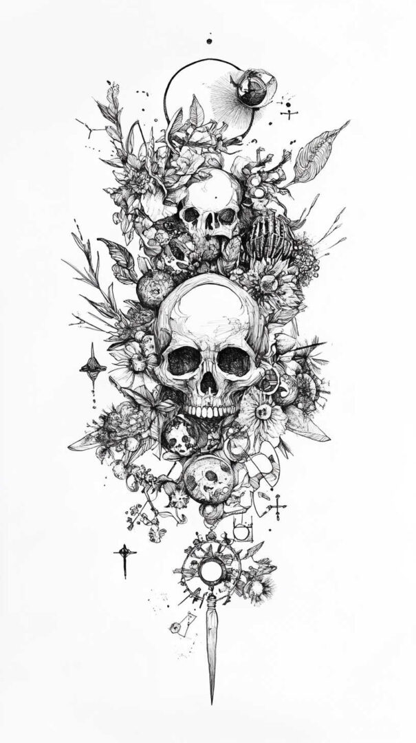 Patchwork tattoo sketches feature a collage-style composition where multiple independent designs are arranged together like patches on fabric or a quilt. This eclectic approach allows for creative mixing of different styles, symbols, and themes on a single canvas while maintaining visual harmony. In 4K HD quality, sketches display exceptional clarity — clean borders between patches, varied line weights, distinct shading techniques, and seamless transitions — providing precise blueprints that show how the patchwork will flow across the skin and look cohesive from different angles.