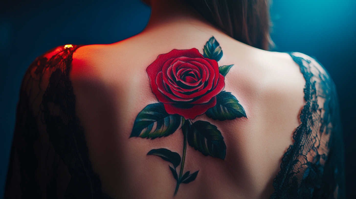 The absence of color draws attention to form and detail, making this style ideal for large pieces on the thigh, calf, or upper back. Women who prefer understated elegance or who want their tattoo to age gracefully often select black and grey roses, knowing the high definition preserves intricate shading even after years of wear.