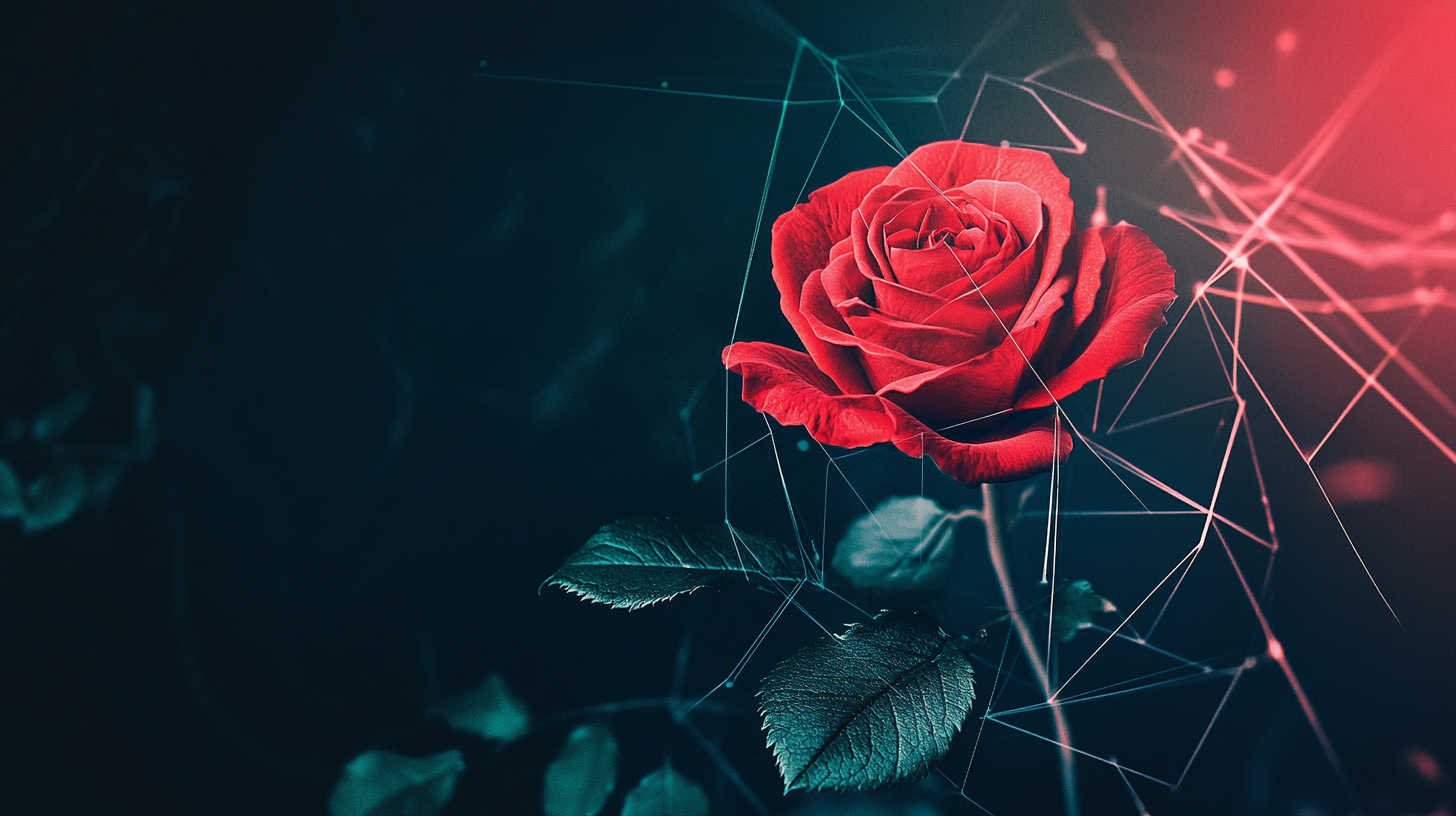 The high definition allows viewers to appreciate the contrast between smooth, velvety petals and the sharp, realistic edges of leaves, creating an emotional connection that feels intimate and profound.