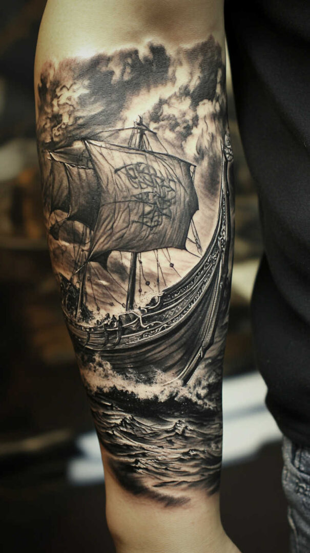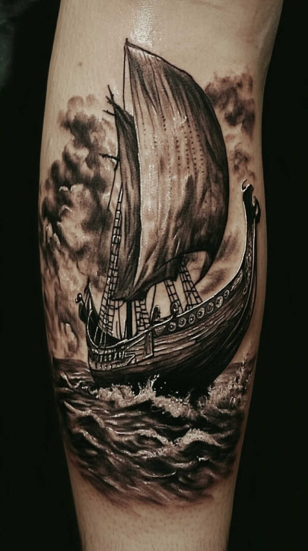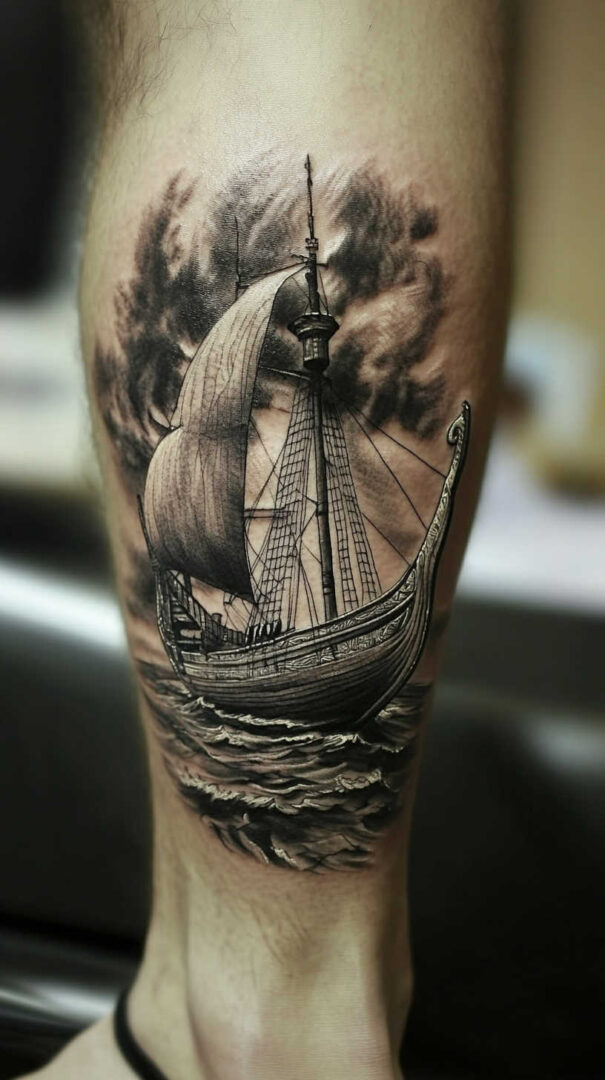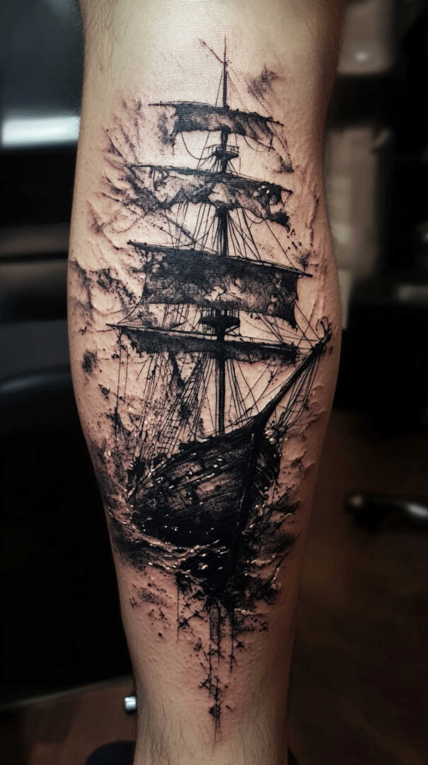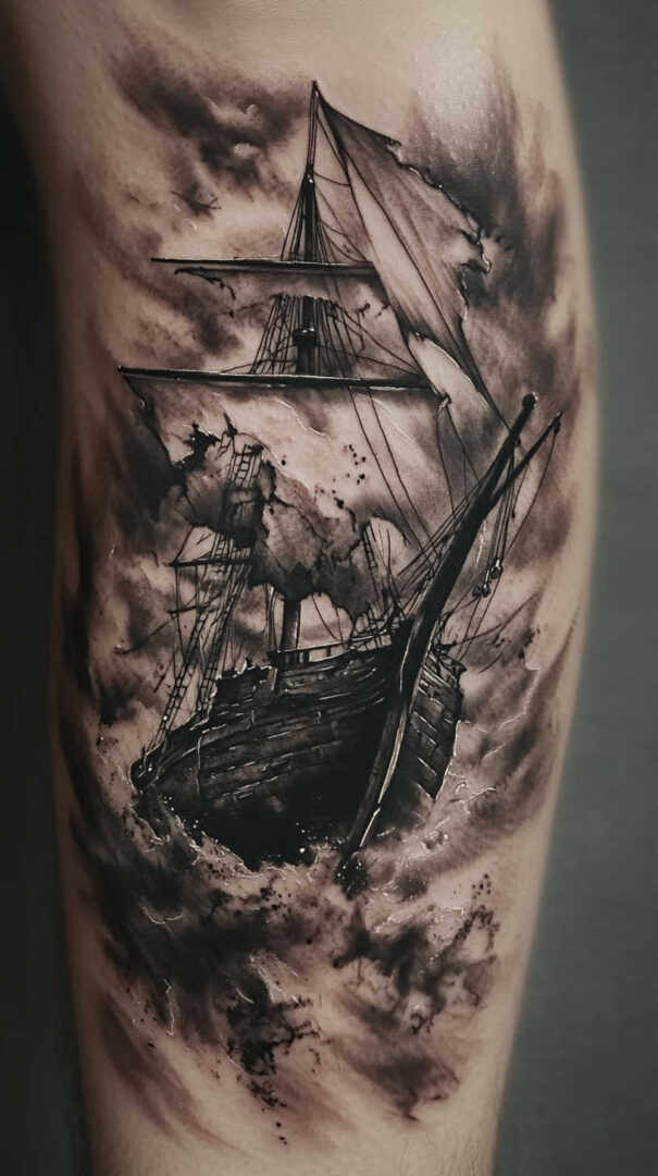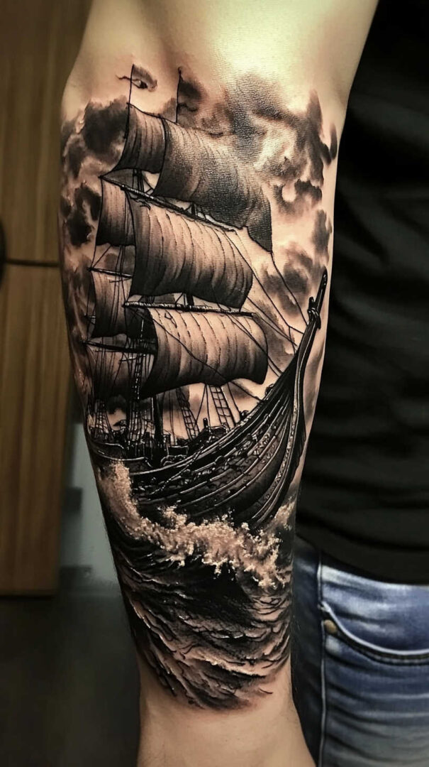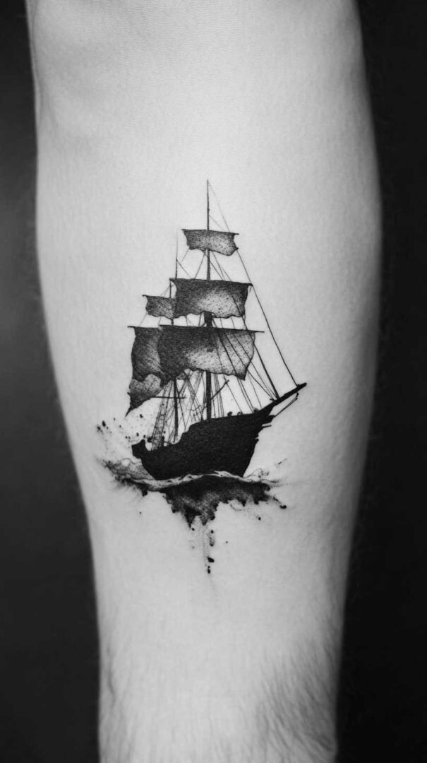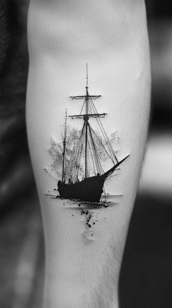 Ship tattoos with bold rigging and hull details age very well.