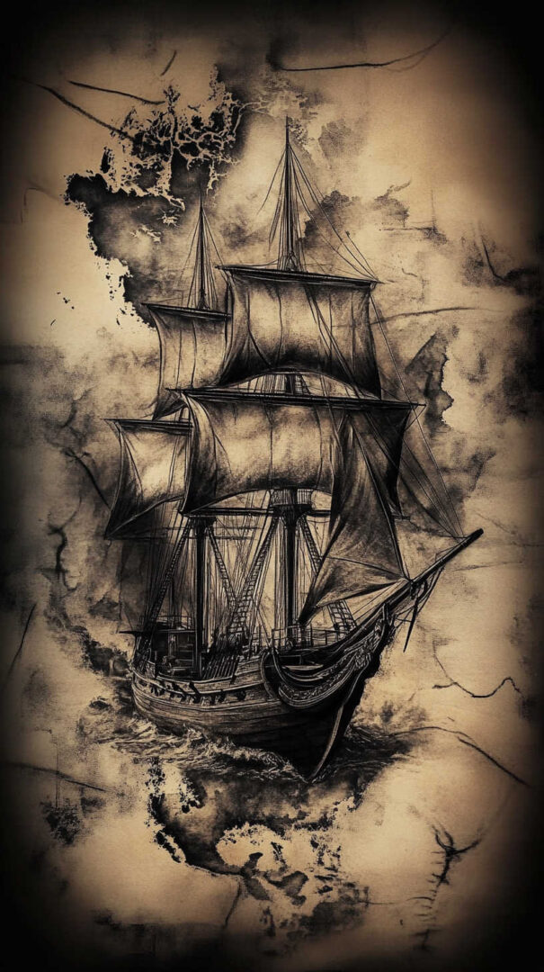 HD sketches highlight thick rope rigging, billowing sails, and sharp hull lines — perfect for forearms, chests, or calves.