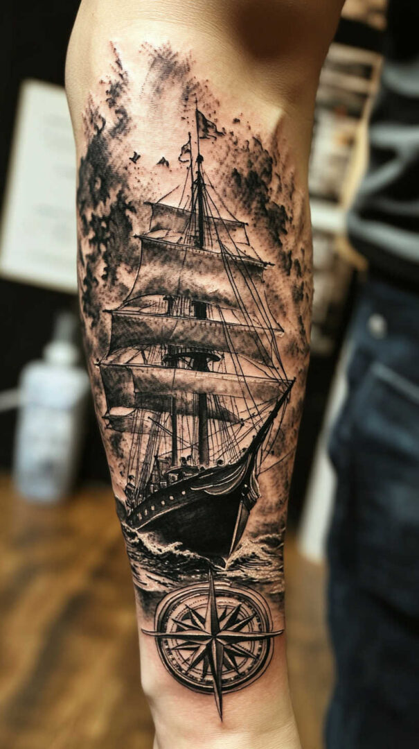 Men choose ship tattoos to represent personal voyages, overcoming storms, safe return home, or the courage to set sail into the unknown. From small compass-integrated vessels to massive full-sleeve or back pieces, ship designs offer endless narrative potential.