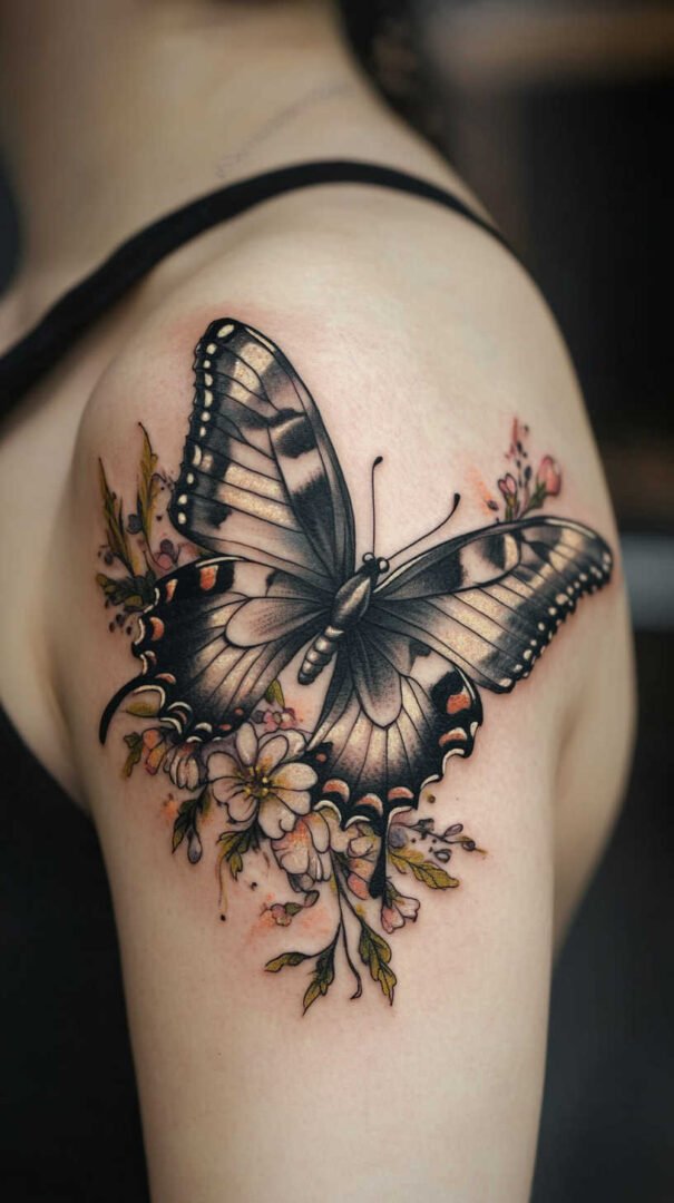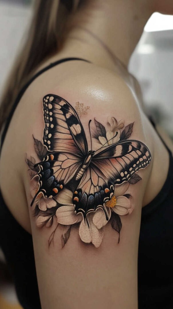 Animal motifs bring a wild, empowering energy to shoulder tattoos. Butterflies, with wings spread in mid-flight, are a classic for women, symbolizing transformation and freedom. In 4K HD, the scales on the wings can be depicted with microscopic detail, incorporating iridescent colors that shift under light.