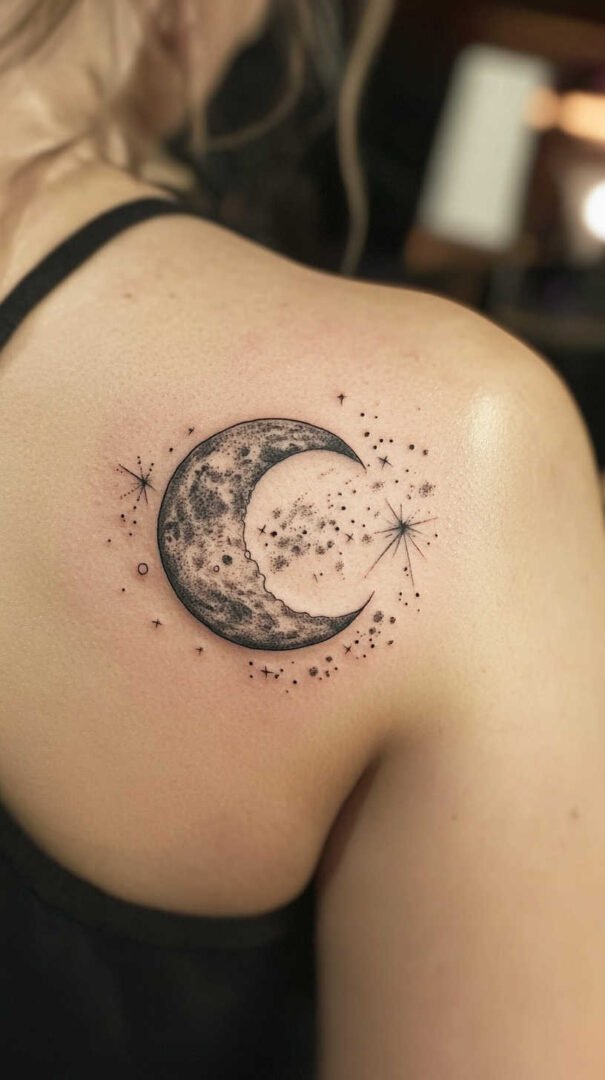 Watercolor tattoos, in particular, shine in high definition, where splashes of ink create soft edges and vibrant hues, as if painted directly on the skin. These can incorporate elements like dreamcatchers or celestial motifs, with stars and moons detailed to show craters and twinkles, offering a ethereal quality perfect for the shoulder’s graceful lines.