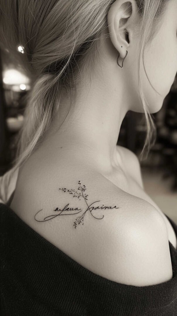 Quotes and script tattoos add a personal touch, often placed along the collarbone or curving over the shoulder blade. In 4K HD, the lettering is crisp and elegant, with fonts ranging from cursive calligraphy to bold sans-serif.
