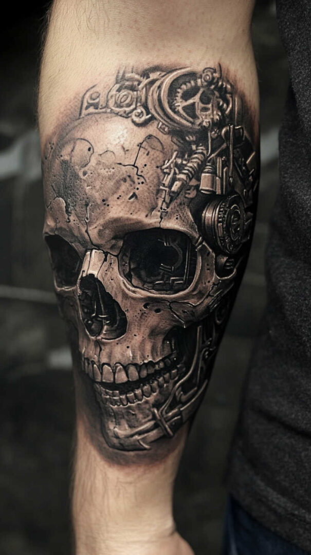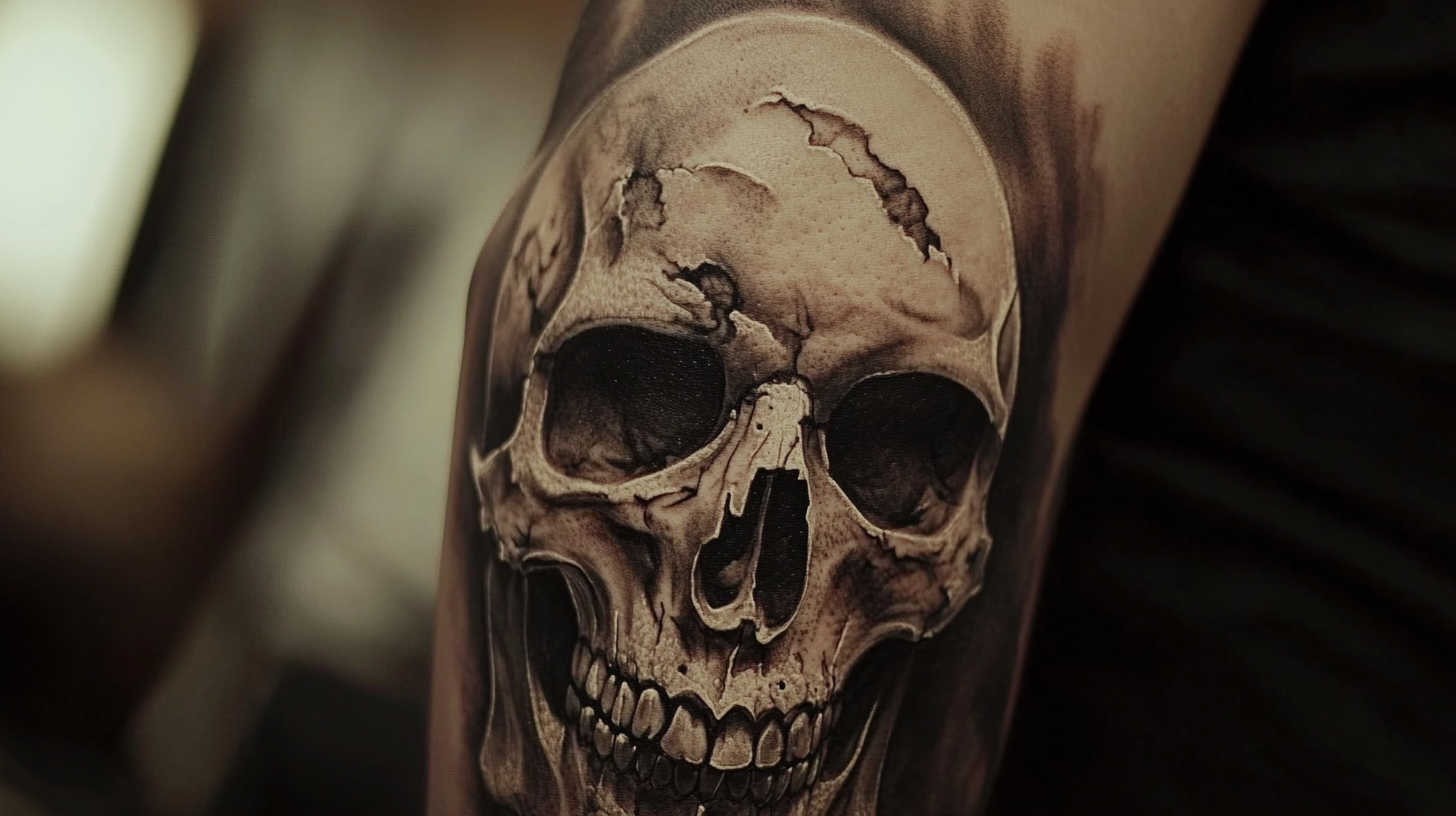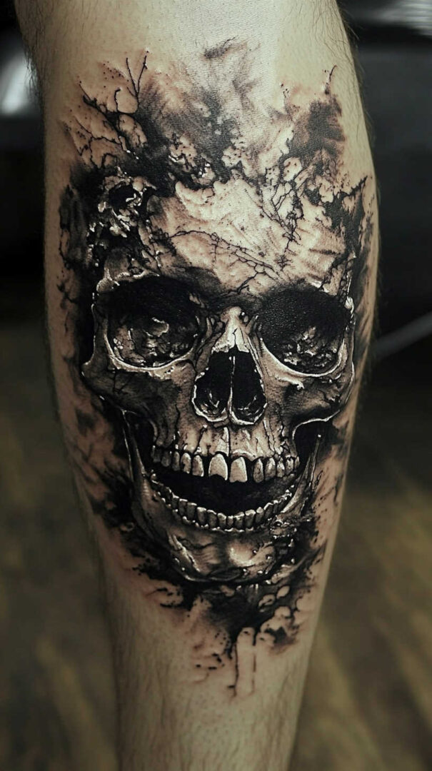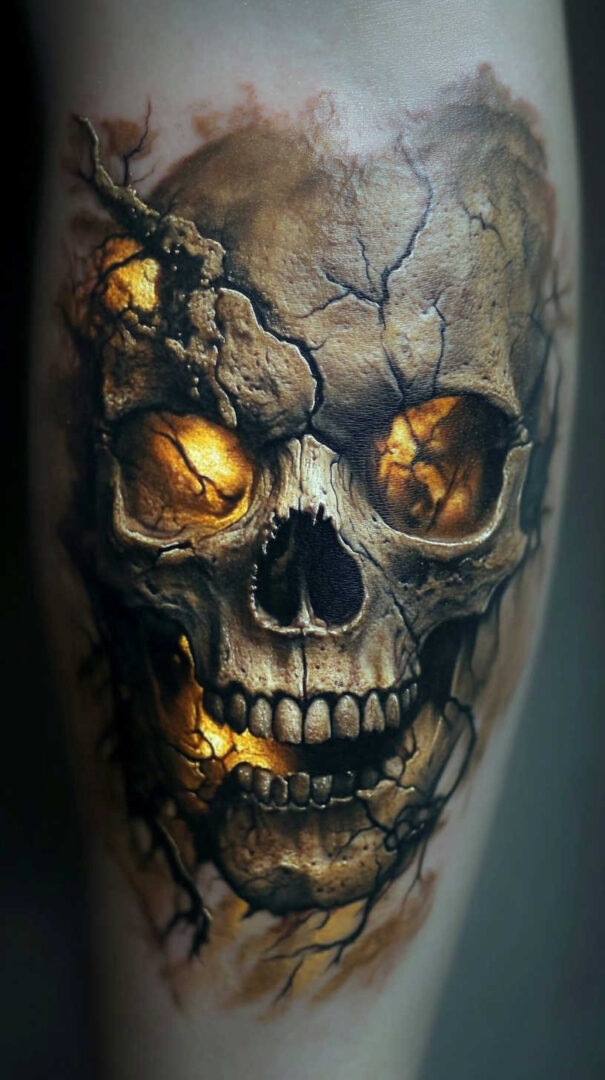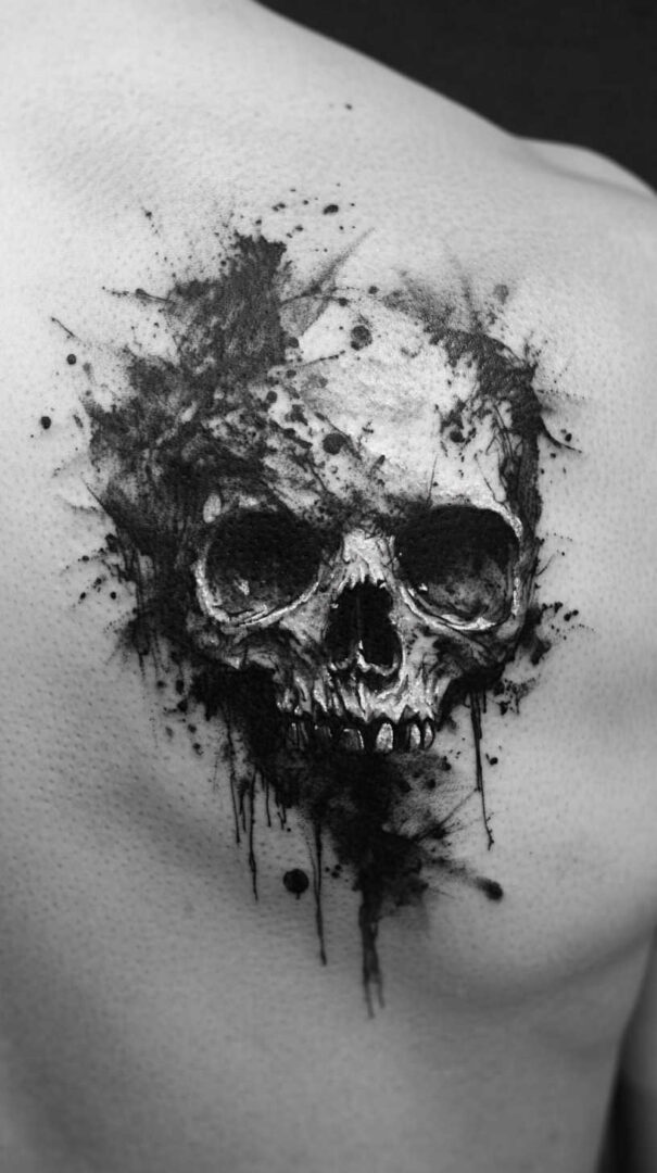 Men choose skull tattoos to represent memento mori (“remember you must die”), inner strength, overcoming fear of death, or a bold statement of living fully. Designs range from hyper-realistic anatomical skulls to stylized traditional, geometric, or symbolic interpretations. High-resolution renders emphasize depth, contrast, and how light and shadow create a haunting yet majestic presence.