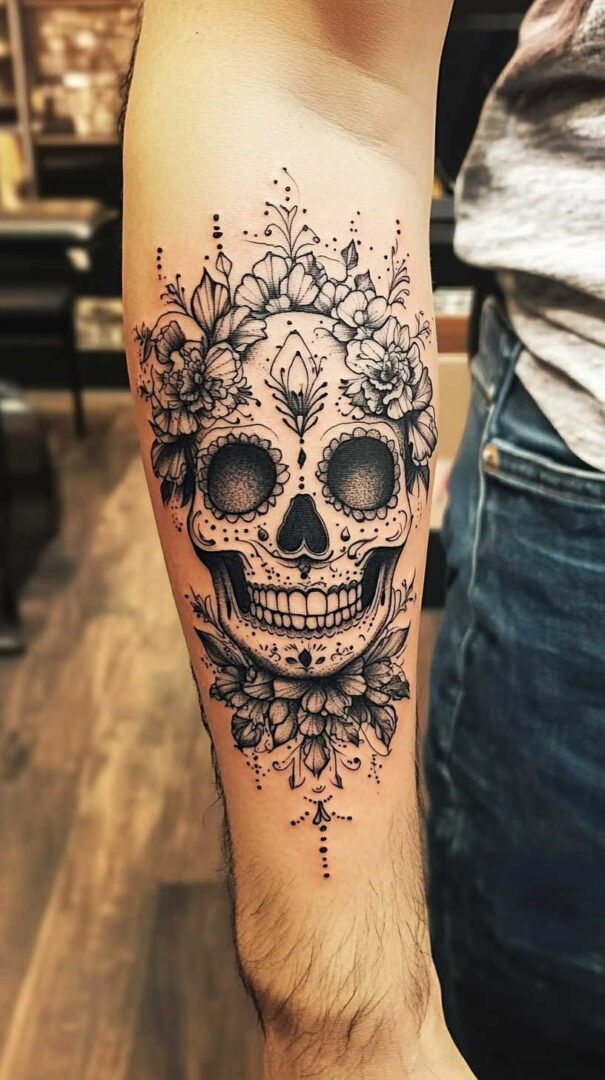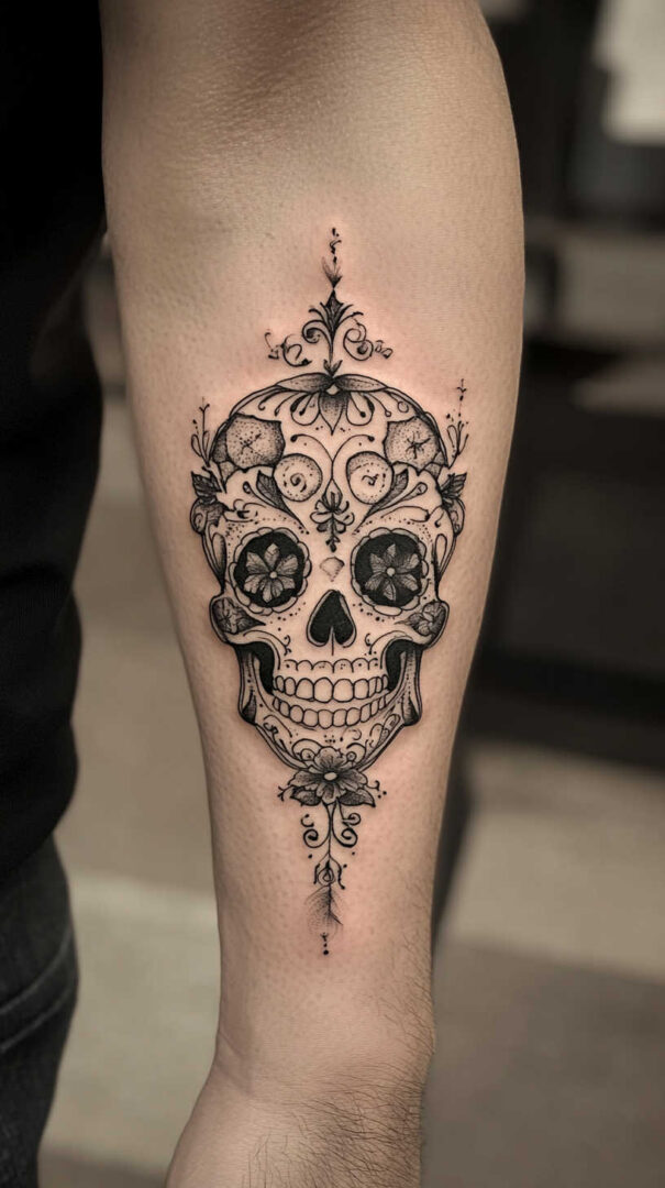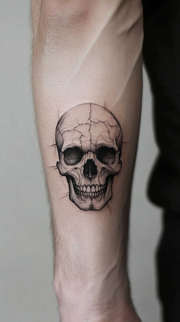 - Style Fusion — Realistic skull with geometric patterns or traditional outline with modern shading.