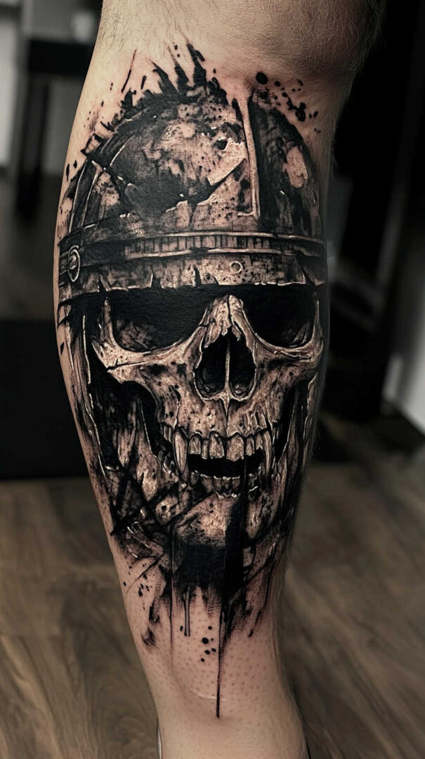 - Skull with Helmet — Warrior spirit or fallen soldier tribute.