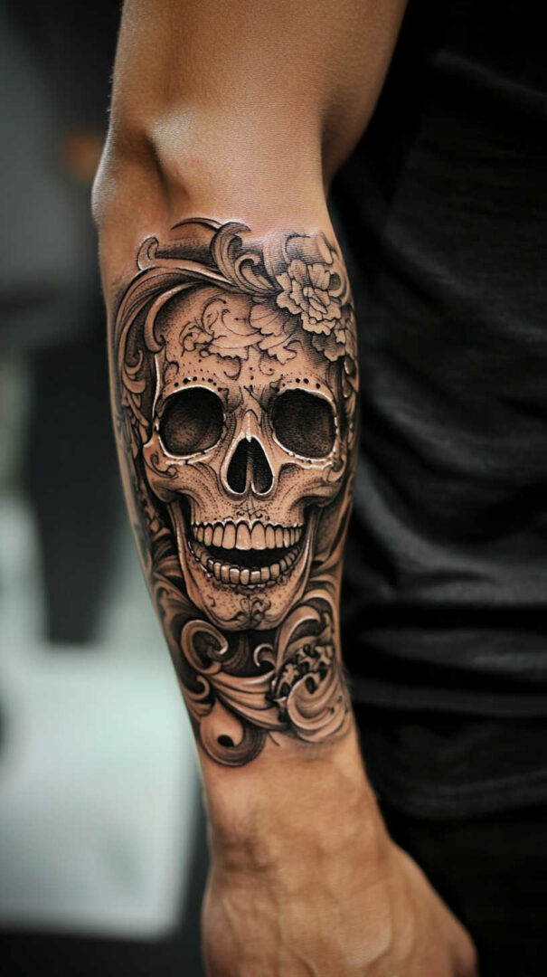 These symbols make skull tattoos potent declarations of courage, authenticity, and unfiltered masculinity.