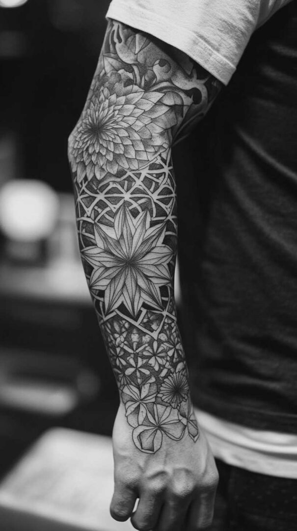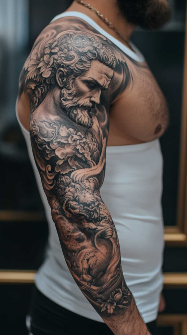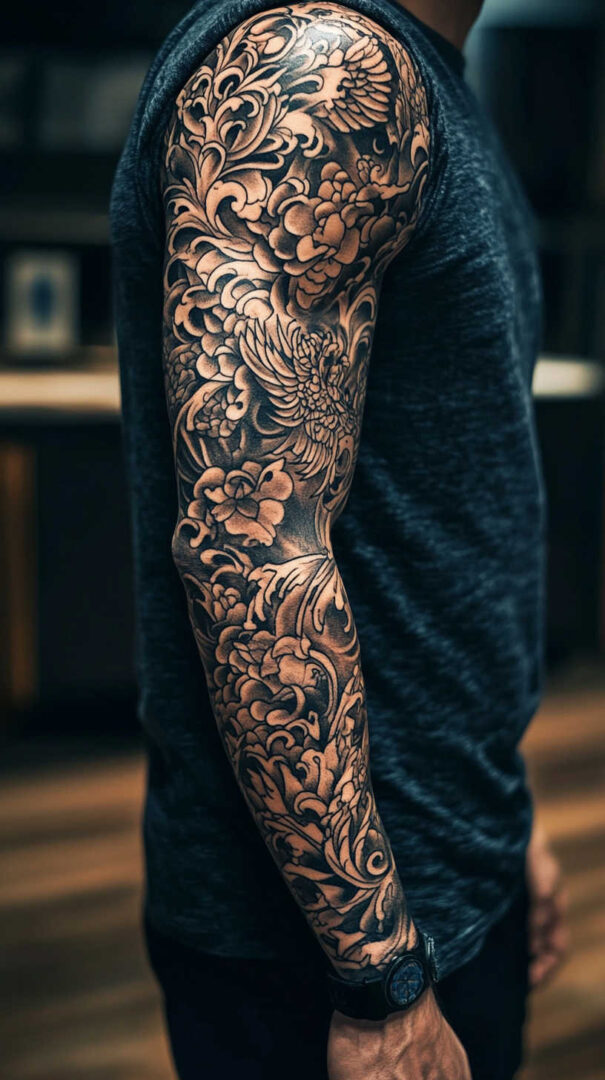 Men choose sleeve tattoos to showcase strength, heritage, personal journey, resilience, or cultural pride. Designs can be cohesive single themes or progressive stories that evolve from shoulder to wrist. High-resolution renders emphasize how elements interact with muscle contours and natural arm movement for a living, breathing piece of art.