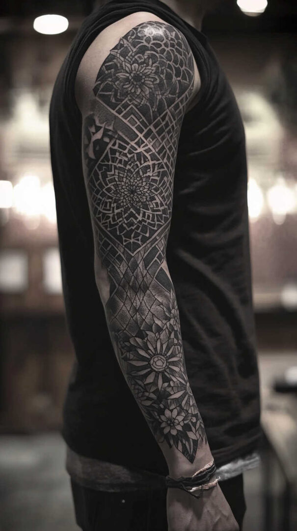 - Polynesian or Maori Patterns — Bold blackwork with meaningful symbols wrapping the arm.