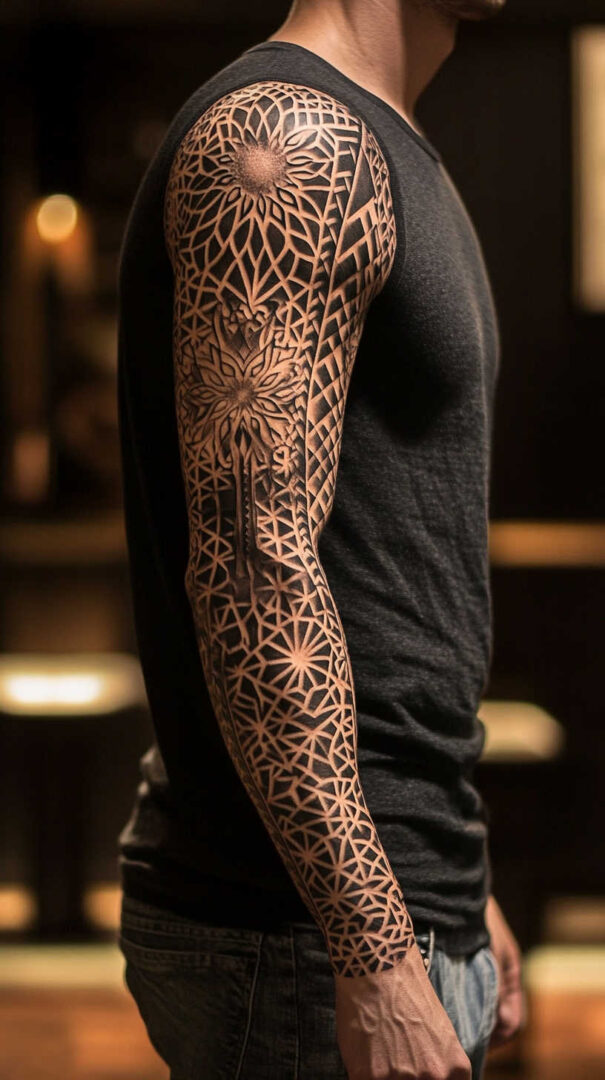 - Sacred Geometry — Precise mandalas or patterns centered on the bicep or forearm.