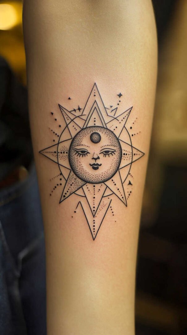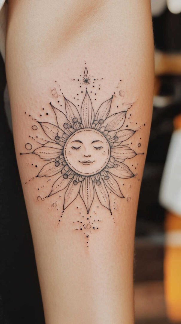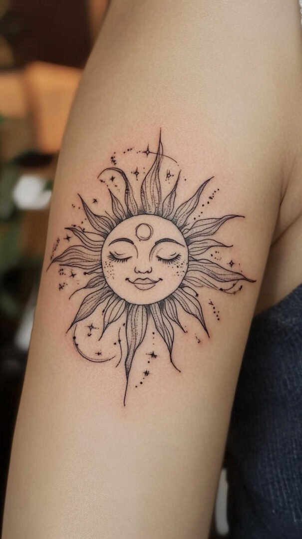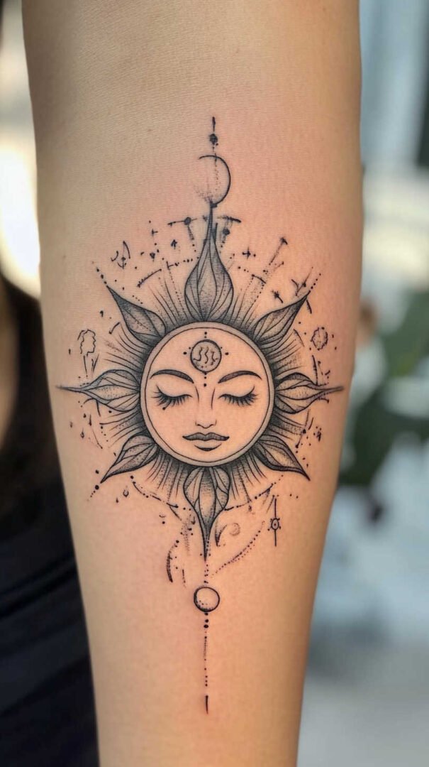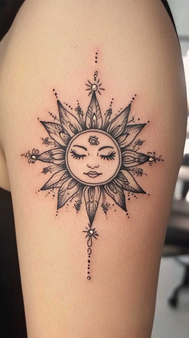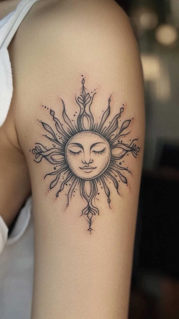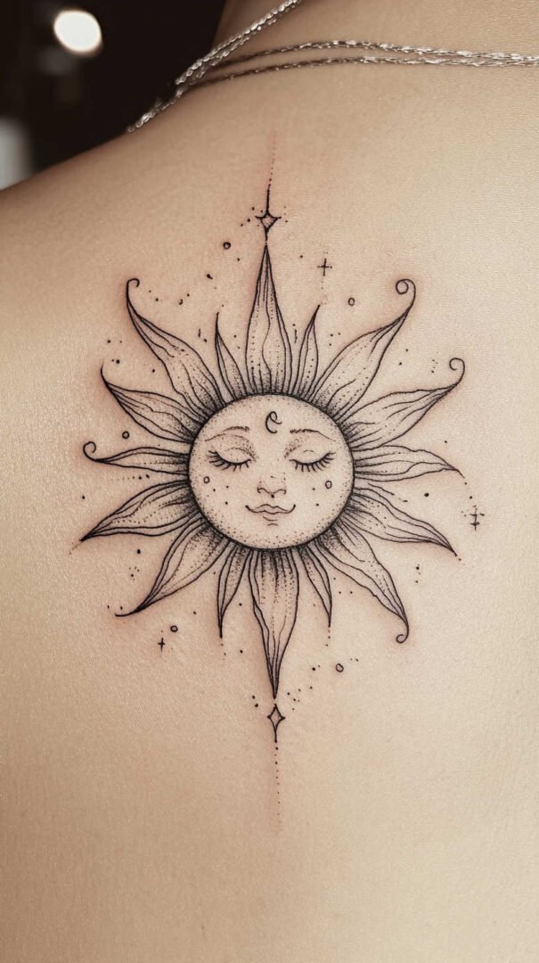 Placement plays a crucial role in how a sun tattoo enhances a woman’s form. The body’s contours can accentuate the design’s flow, especially in high-definition where details pop against skin tones.