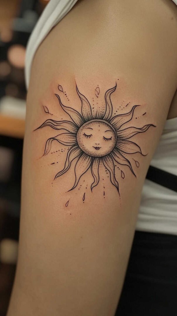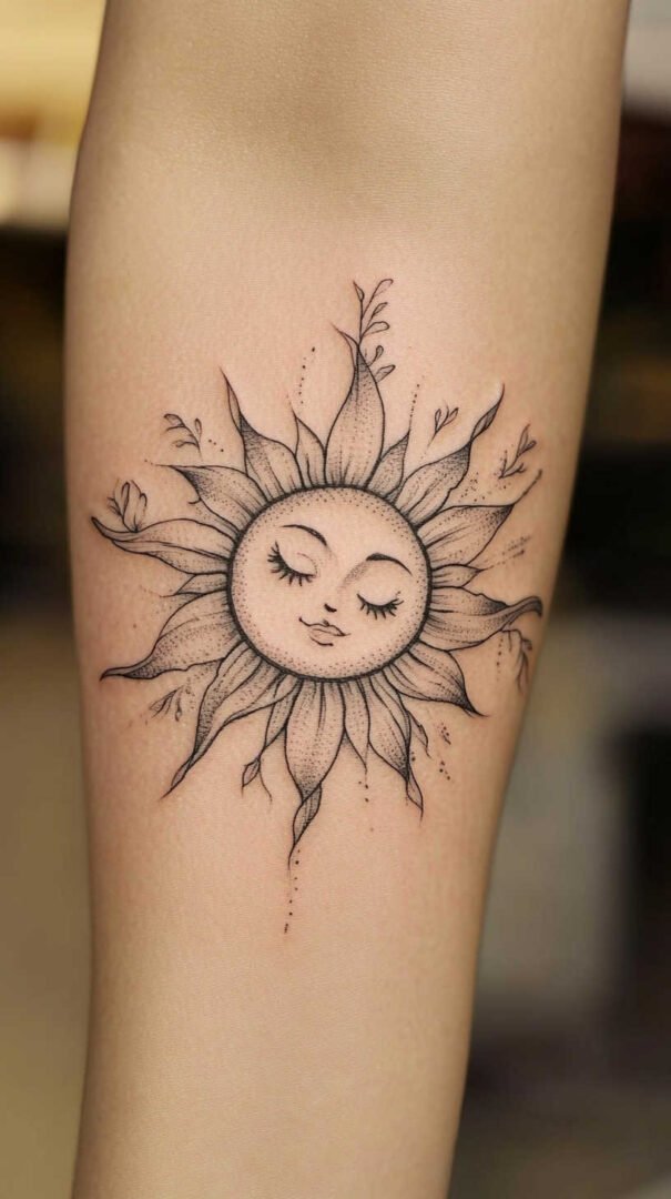 When it comes to sun tattoo designs for women, the options are as diverse as the sun’s rays. High-definition 4K styles elevate these to artistic heights, with ultra-sharp edges and depth that make them appear almost three-dimensional. Let’s explore some of the most sought-after variations.
