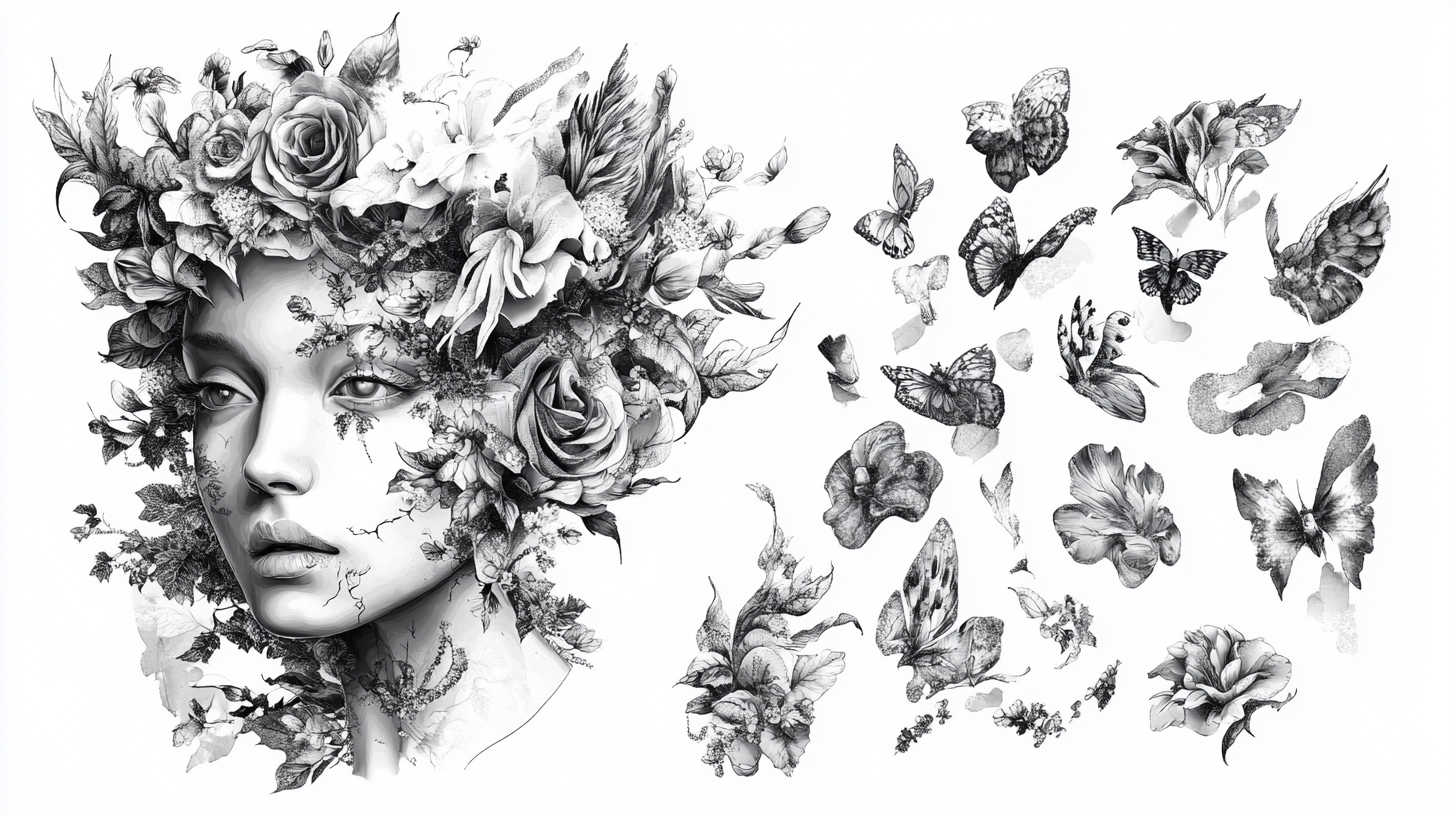 One idea: a woman’s face melting into a cascade of butterflies, her eyes remaining sharp amid the flux. In 4K HD, the skin’s porcelain smoothness transitions to wing patterns with intricate vein work, symbolizing change.