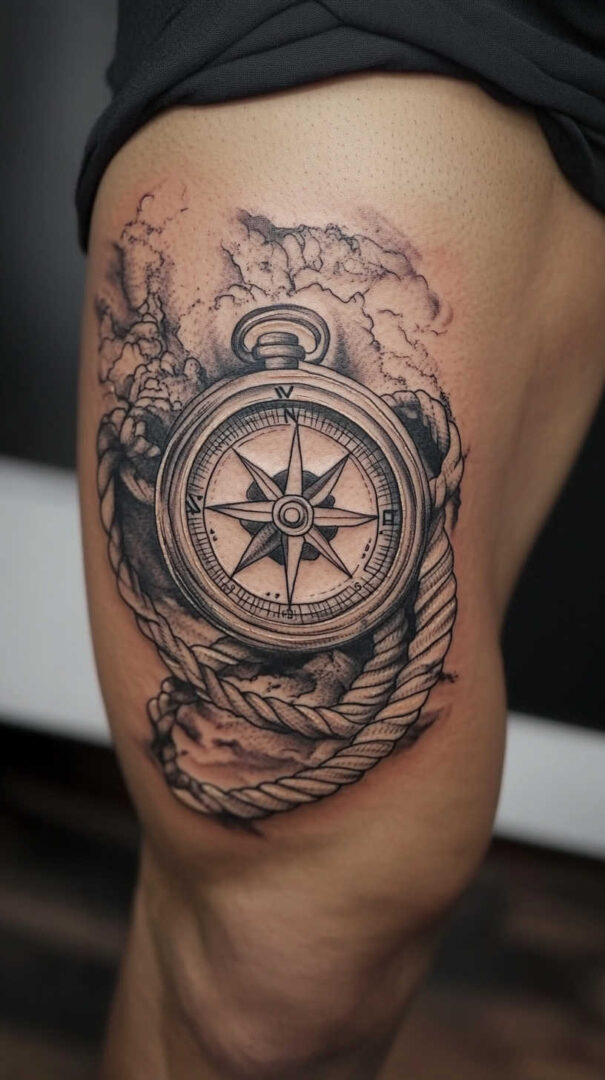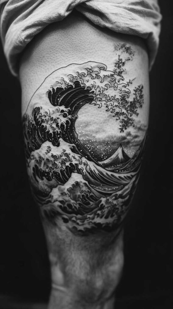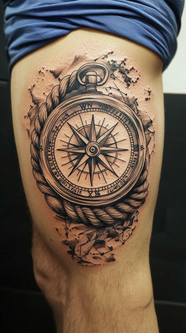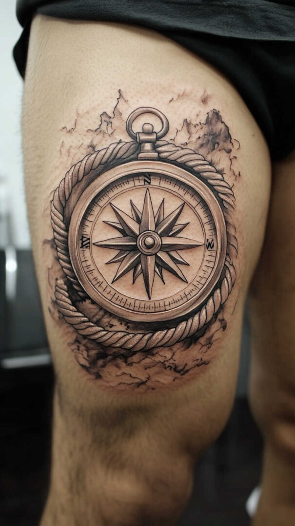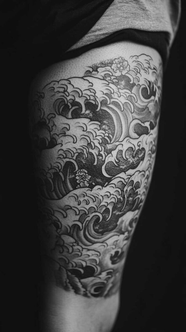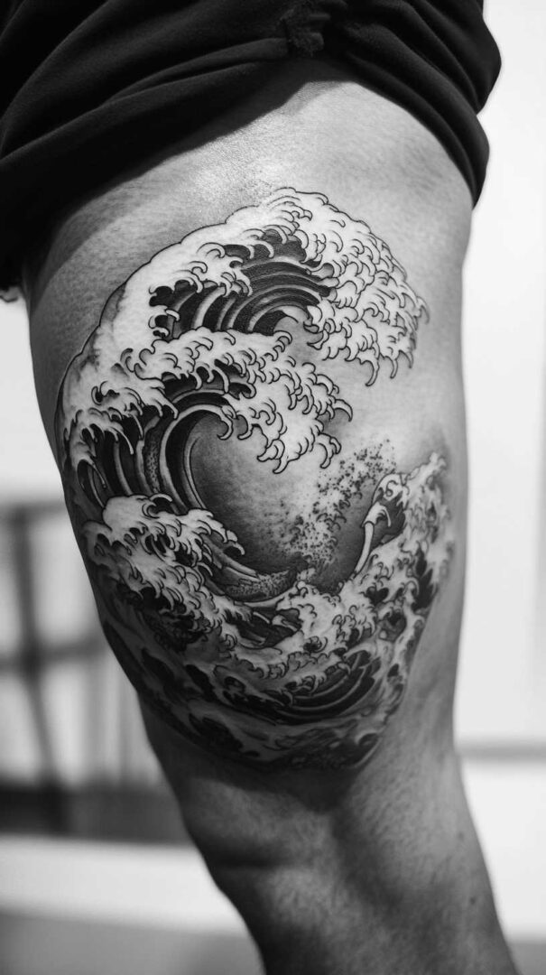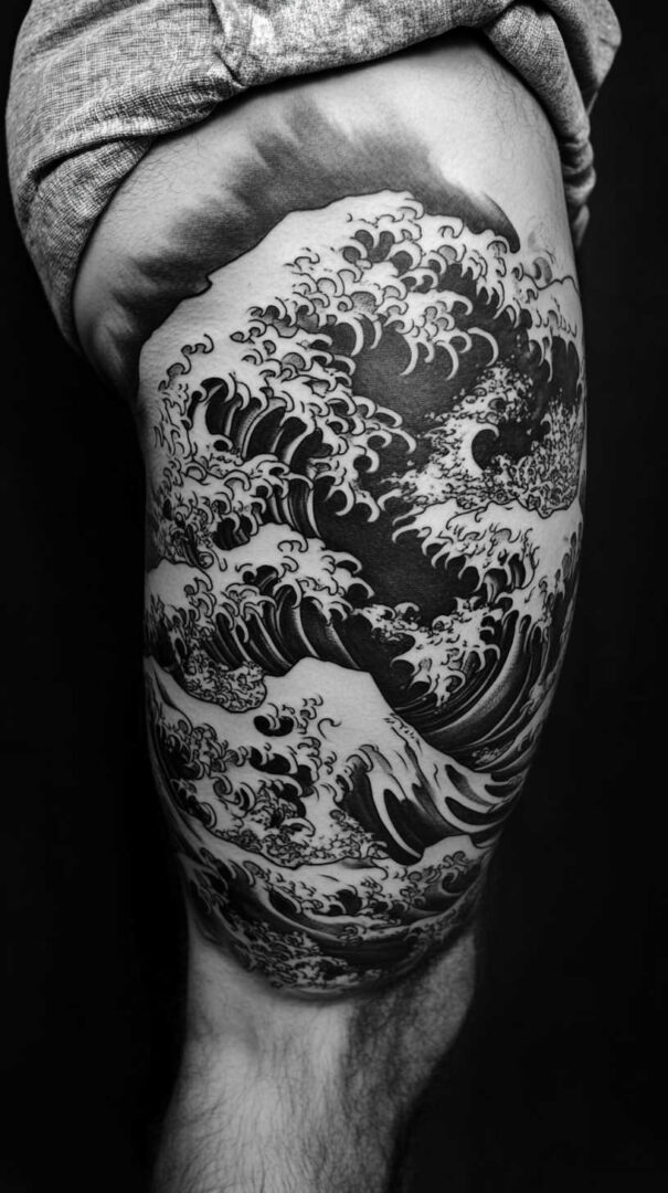 - Polynesian or Maori Patterns — Bold blackwork with meaningful symbols wrapping the thigh.