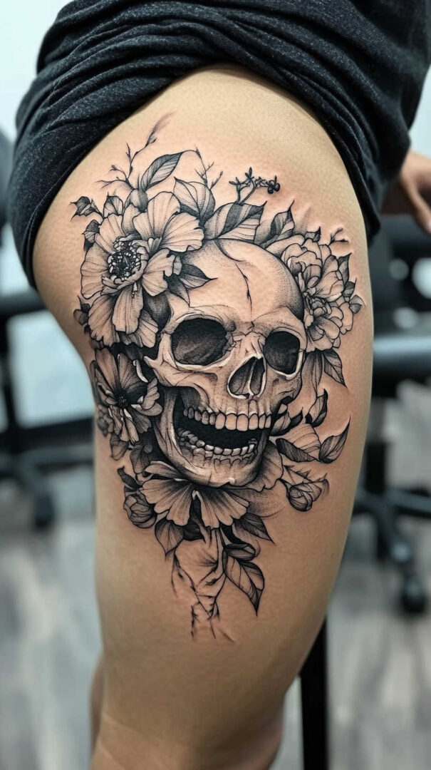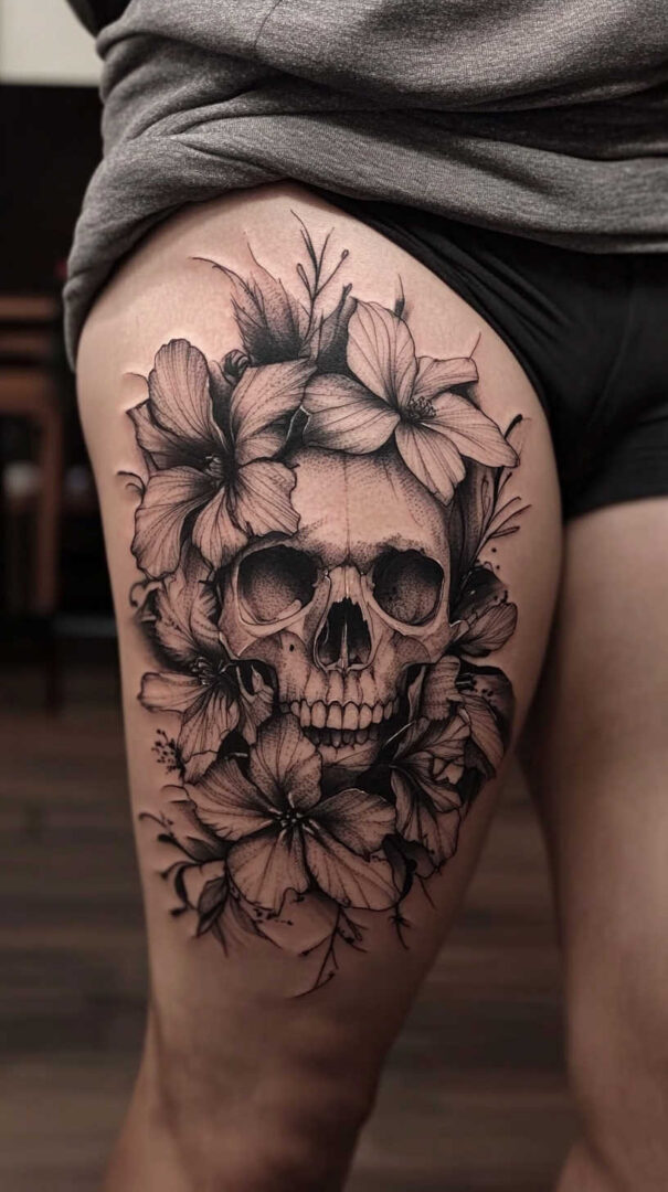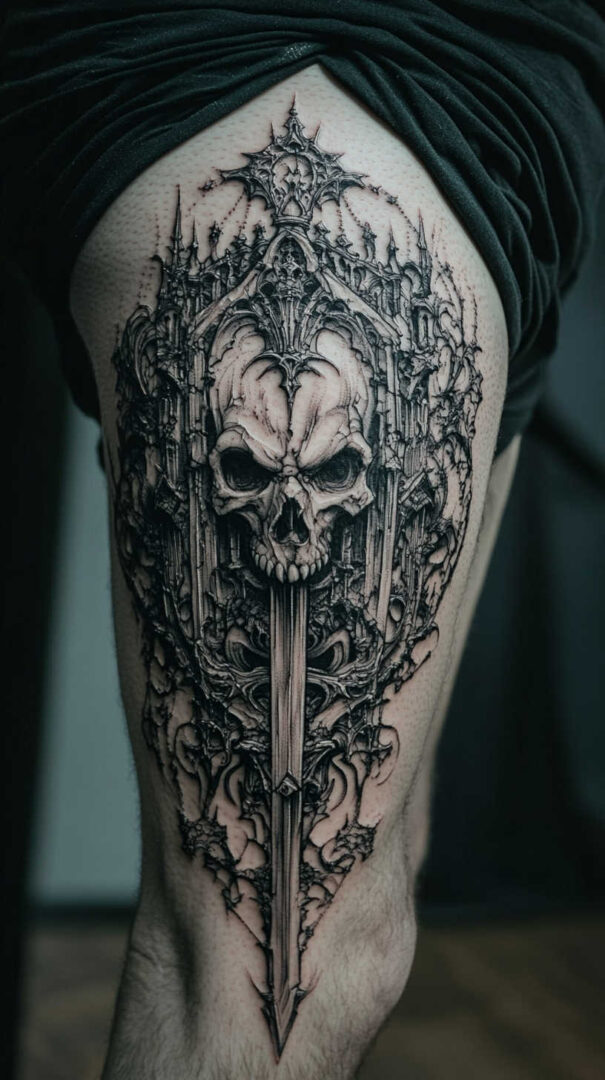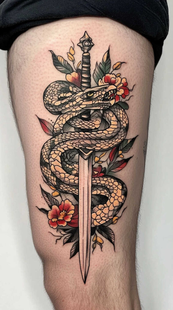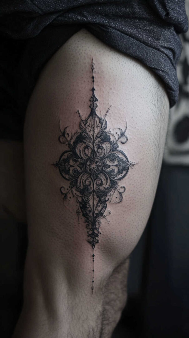 Men choose thigh tattoos for their combination of high visual impact and relative concealability (easy to cover with pants). This placement is ideal for large-scale pieces that represent strength, journey, heritage, protection, or personal transformation. The thigh’s natural shape enhances vertical flow and dynamic movement in the final tattoo.