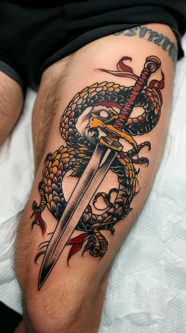 - Dragon Coiling — Serpentine body wrapping the thigh for wisdom, power, and transformation.