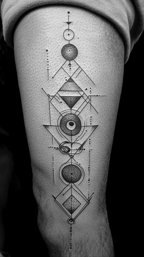 - Sacred Geometry Mandalas — Precise radial designs centered on the thigh.