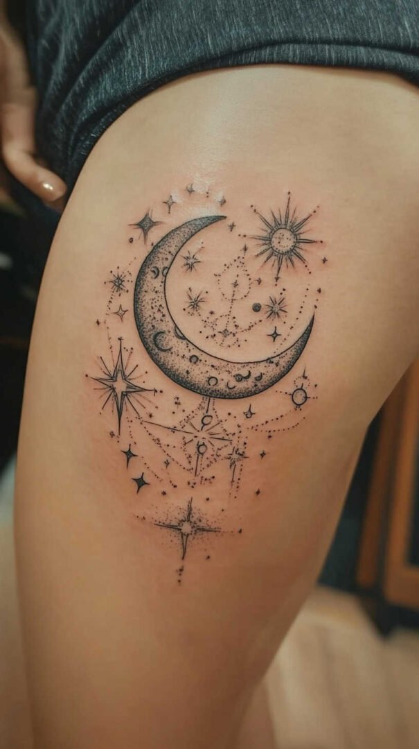 Placement enhances a tattoo’s effect. Outer thigh suits bold, visible designs that showcase during movement. Inner thigh offers privacy, ideal for sensitive or intimate motifs. Front thigh provides a balanced canvas for central focal points, while back thigh remains more concealed.