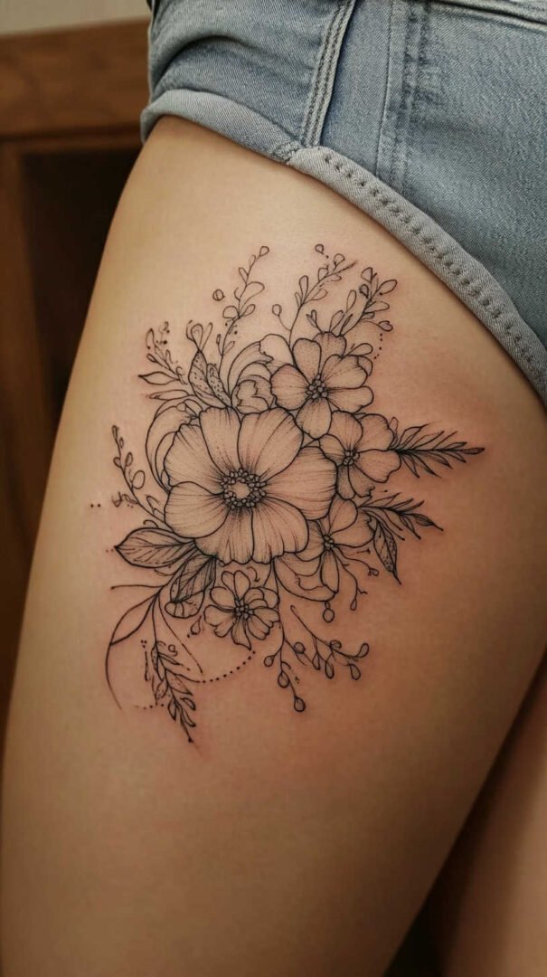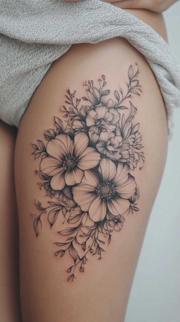 Floral Thigh Tattoos: Timeless Elegance and Symbolism