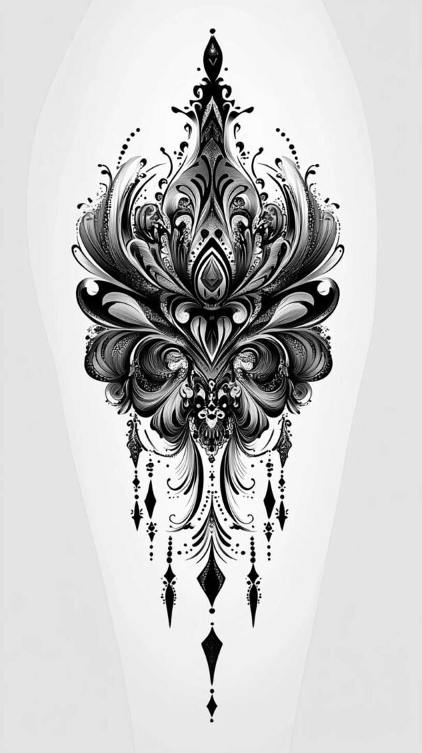 These designs shine in black and gray for timeless sophistication or with pops of color for vibrancy. High-definition rendering highlights every precise line and shaded gradient, making the pattern appear almost three-dimensional. Mandalas suit the thigh’s rounded shape, allowing the design to radiate outward like a sunburst or spiral down the leg for dynamic flow.