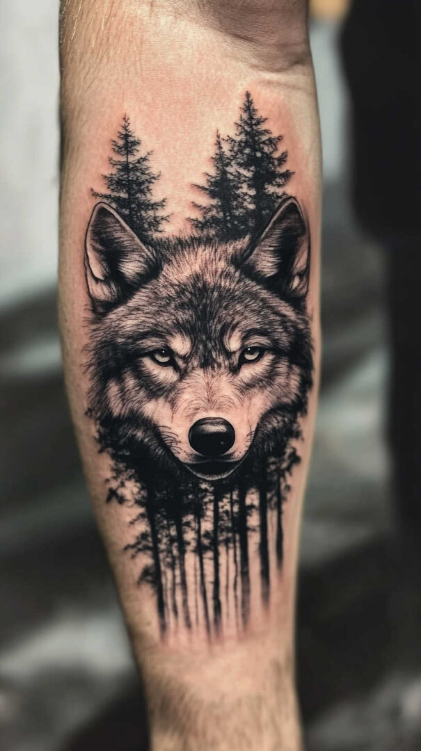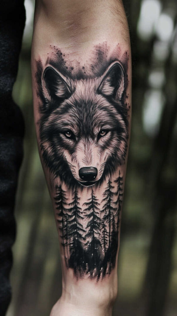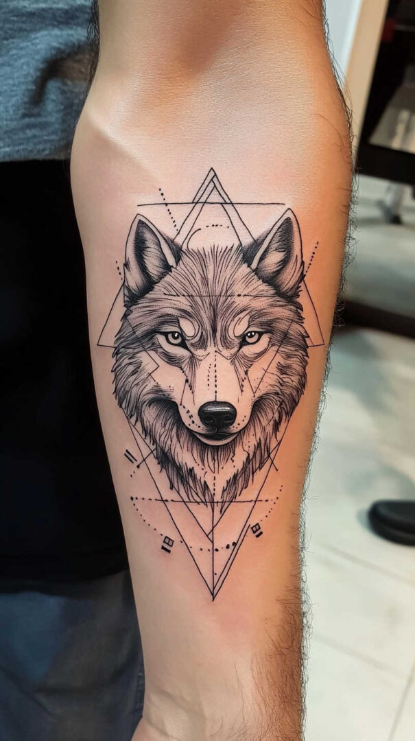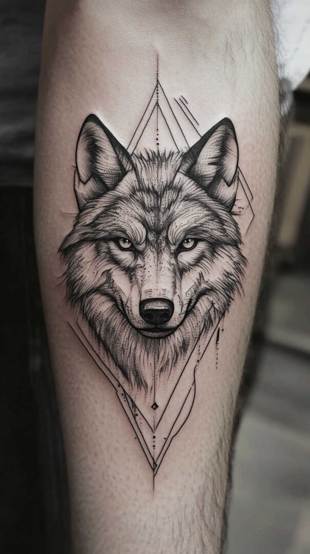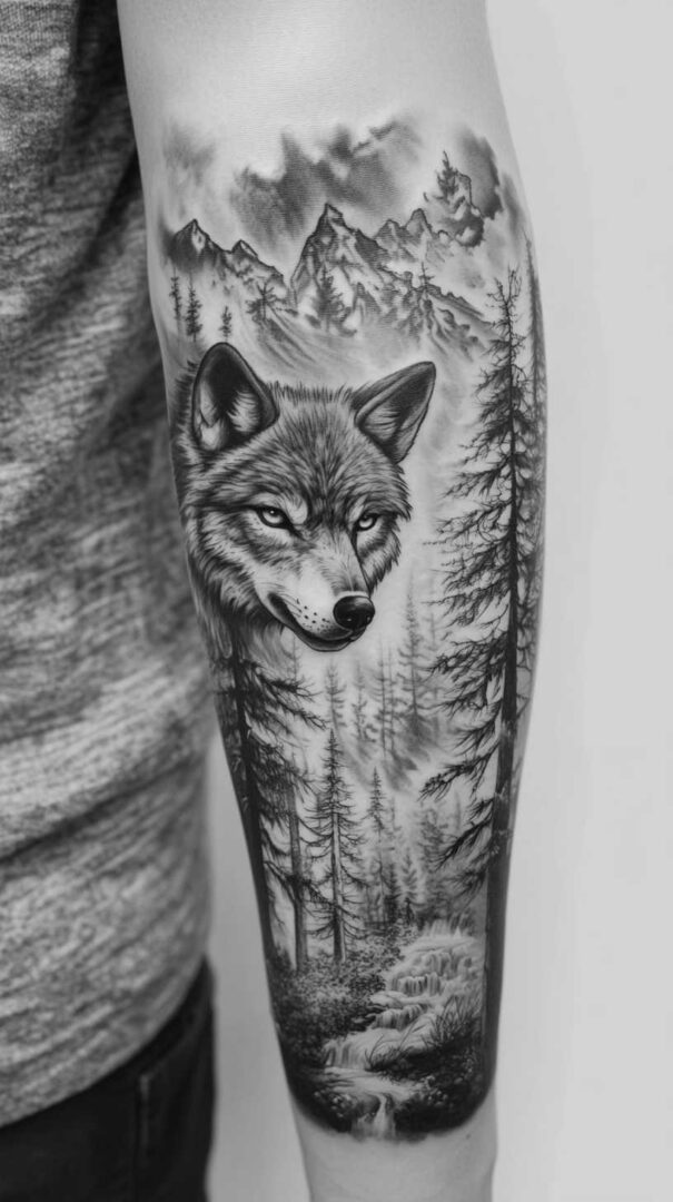 - Forearm — Vertical running wolf or geometric design for daily visibility.