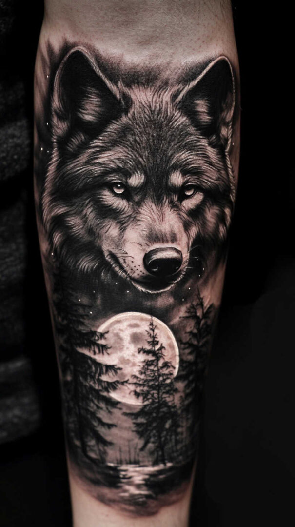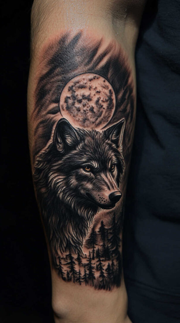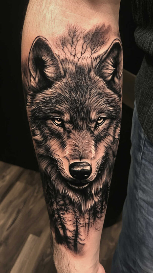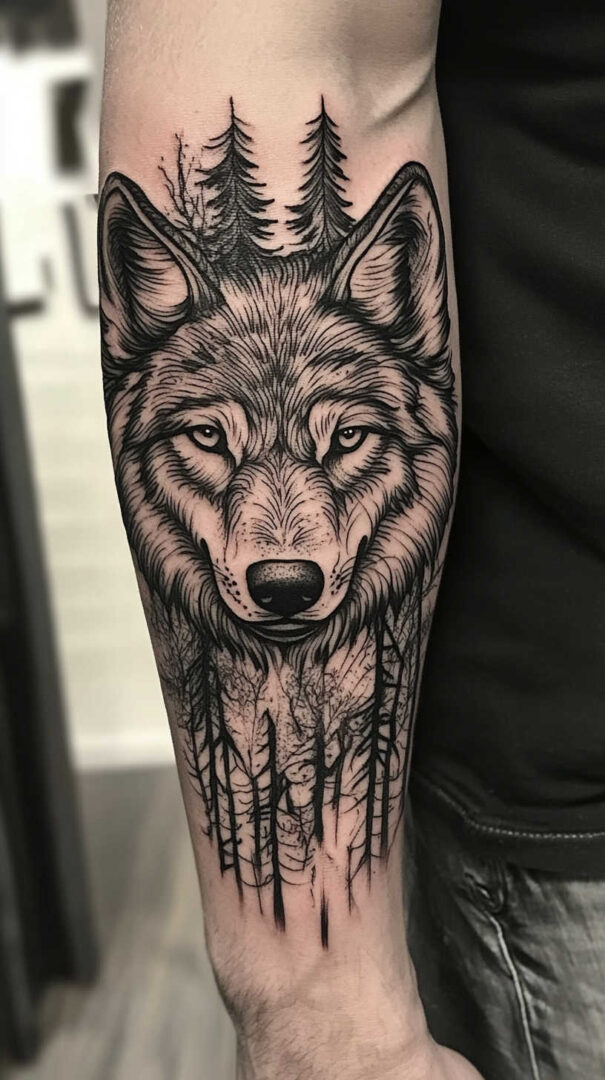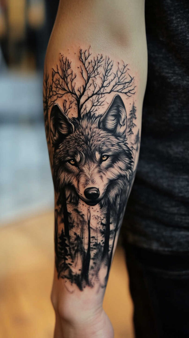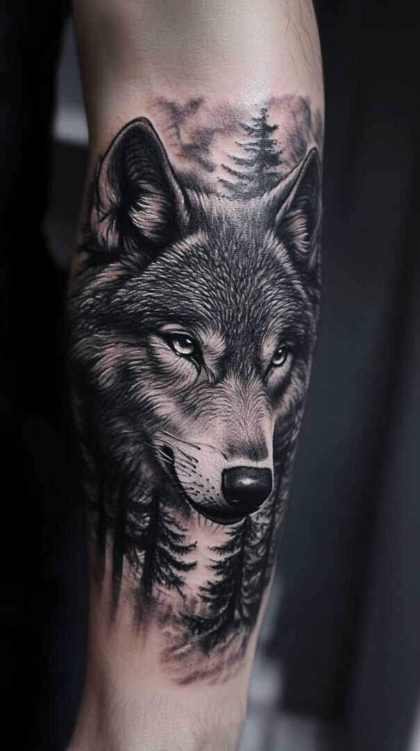 - Forearm — Vertical running wolf or geometric design for daily visibility.