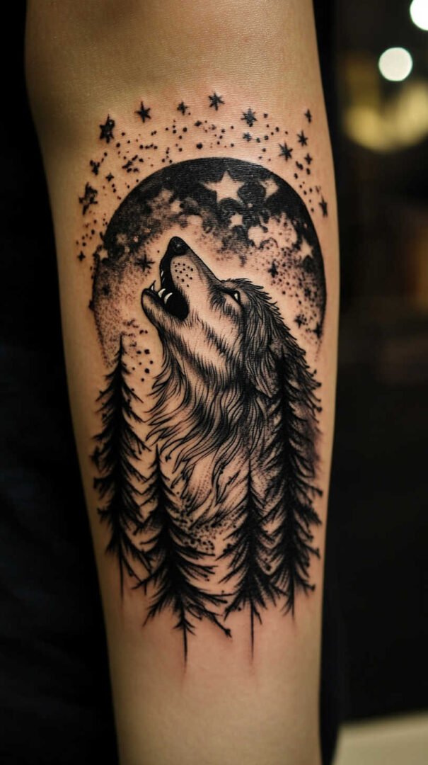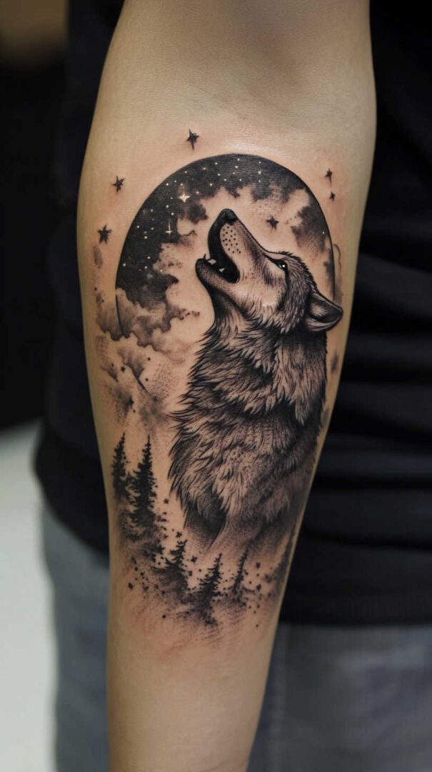 The forearm offers a prominent canvas for medium to large pieces. A wolf wrapping around the arm creates dynamic movement, symbolizing adaptability and forward momentum. This location suits bold statements while remaining easy to display or cover.