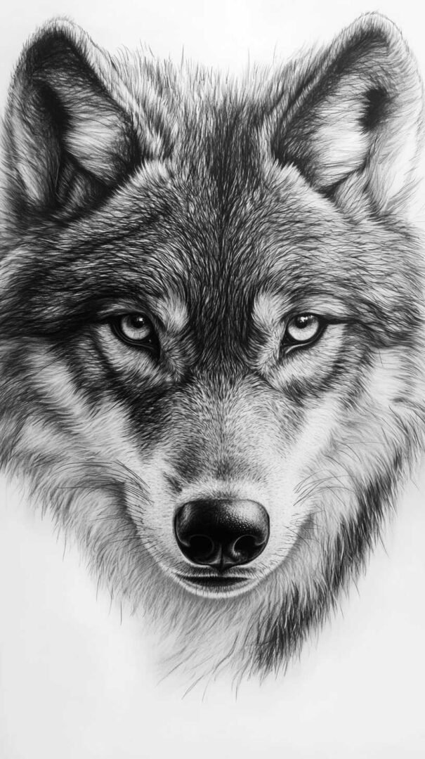 Realistic wolf portraits capture lifelike detail—piercing eyes, textured fur, and expressive features. These designs highlight the wolf’s intelligence and intensity, often rendered with shading for depth and dimension. A close-up of a howling wolf or a watchful gaze conveys raw power and mystery, making it ideal for those drawn to photorealistic art.