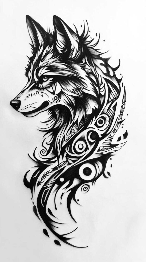 Tribal-inspired designs draw from bold, flowing patterns rooted in indigenous art traditions. Thick black lines and symmetrical motifs evoke ancestral strength and cultural respect. These tattoos often focus on the wolf as a protector, with intricate details that flow naturally across the body.
