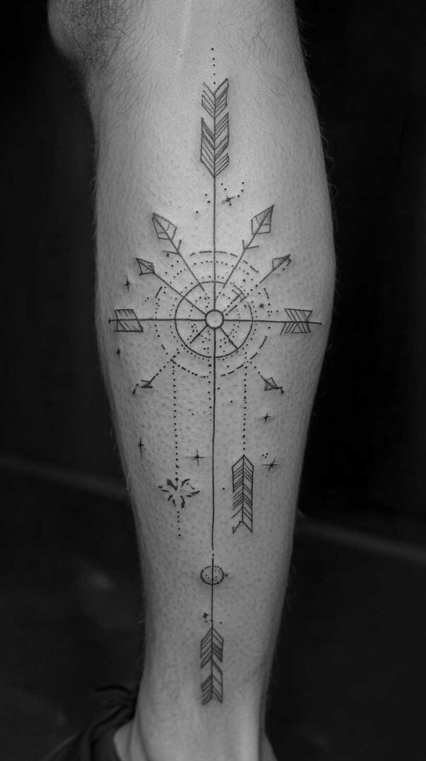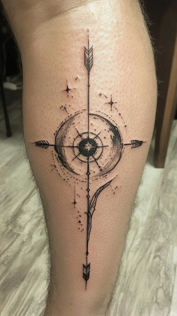- Calf / Thigh — Bold animal or glyph for grounded power.